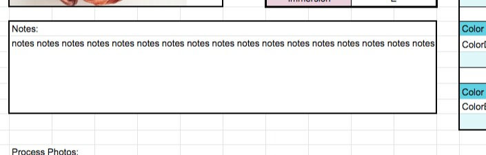 Next move on to the "Notes" sheet. The name of your colorway will autofill and then you can type in your notes. There is also the option of inserting up to three process photos for reference.